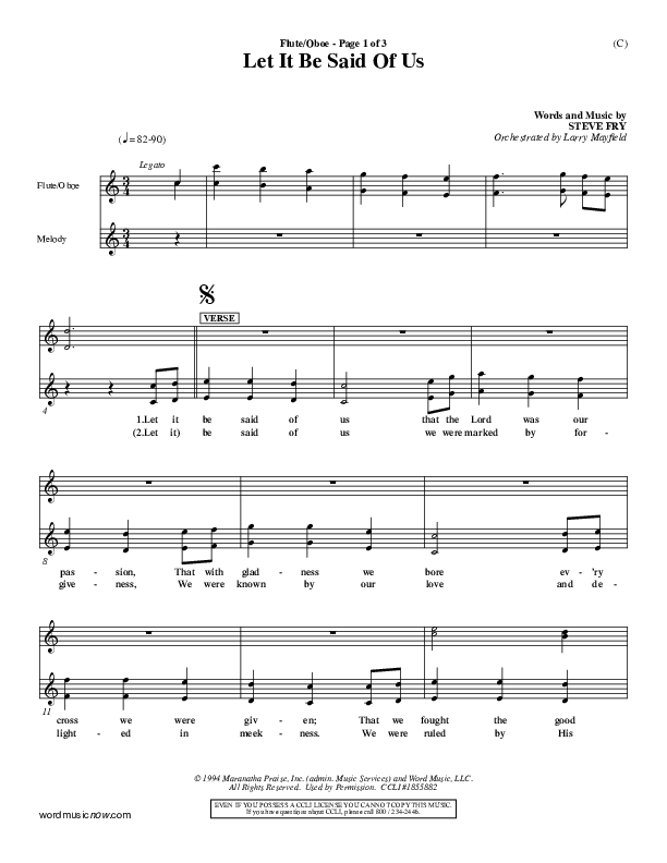 Download the Flute/Oboe sheet music for Let It Be Said Of Us by Steve Fry, from the album Word Music Now.