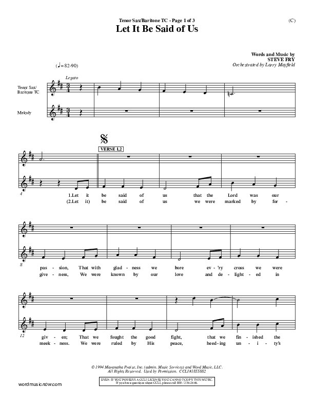 Download the Orchestration for Let It Be Said Of Us by Steve Fry, from the album Word Music Now.