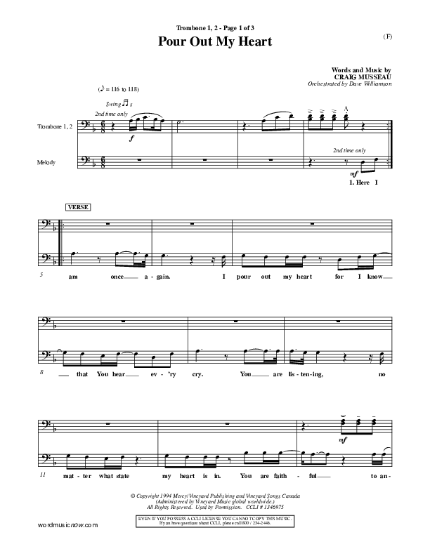 Download the Trombone 1,2 sheet music for Pour Out My Heart by Craig Musseau, from the album Word Music Now.