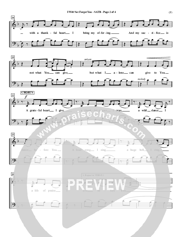 Download the Choir Sheet for I Will Not Forget You, from the album Word Music Now.