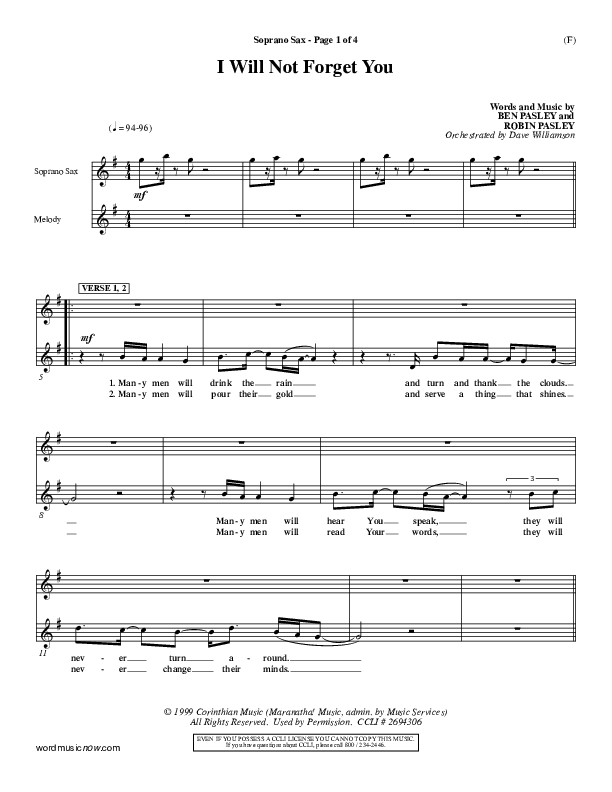 Download the Orchestration for I Will Not Forget You, from the album Word Music Now.
