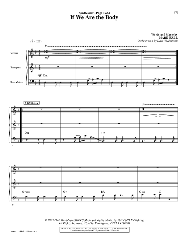 Download the Orchestration for If We Are The Body by Mark Hall, from the album Word Music Now.