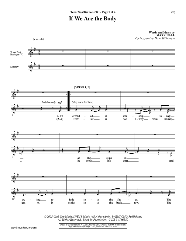 Download the Orchestration for If We Are The Body by Mark Hall, from the album Word Music Now.