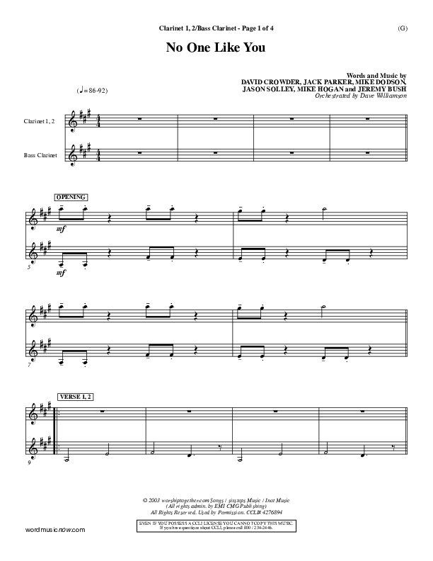 Download the Orchestration for No One Like You by David Crowder, from the album Word Music Now.
