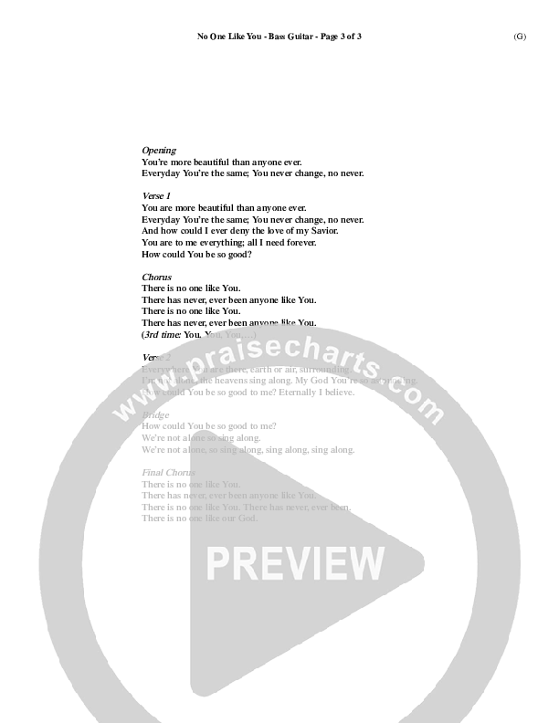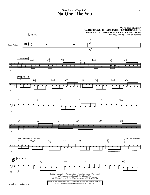 Download the Rhythm Chart for No One Like You by David Crowder, from the album Word Music Now.
