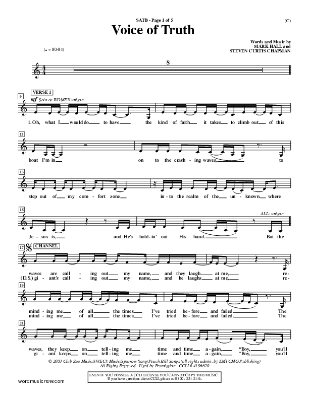 Download the Choir Sheet for Voice of Truth by Mark Hall, from the album Word Music Now.