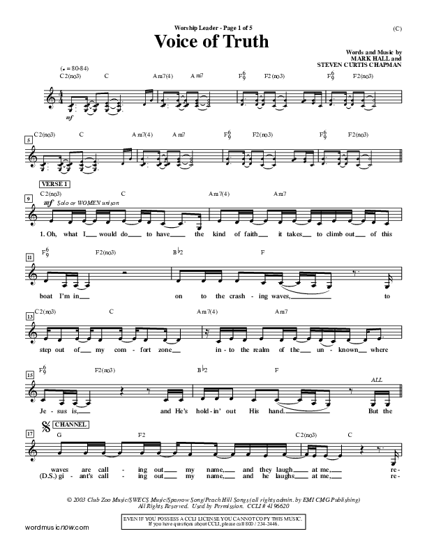 Download the Orchestration for Voice of Truth by Mark Hall, from the album Word Music Now.