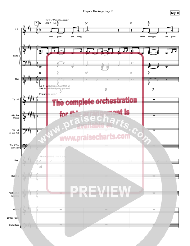 Download the Orchestration for Prepare The Way by New Life Worship, from the album Ross Parsley: I Am Free. This song was arranged by David Shipps in the key of C, D.