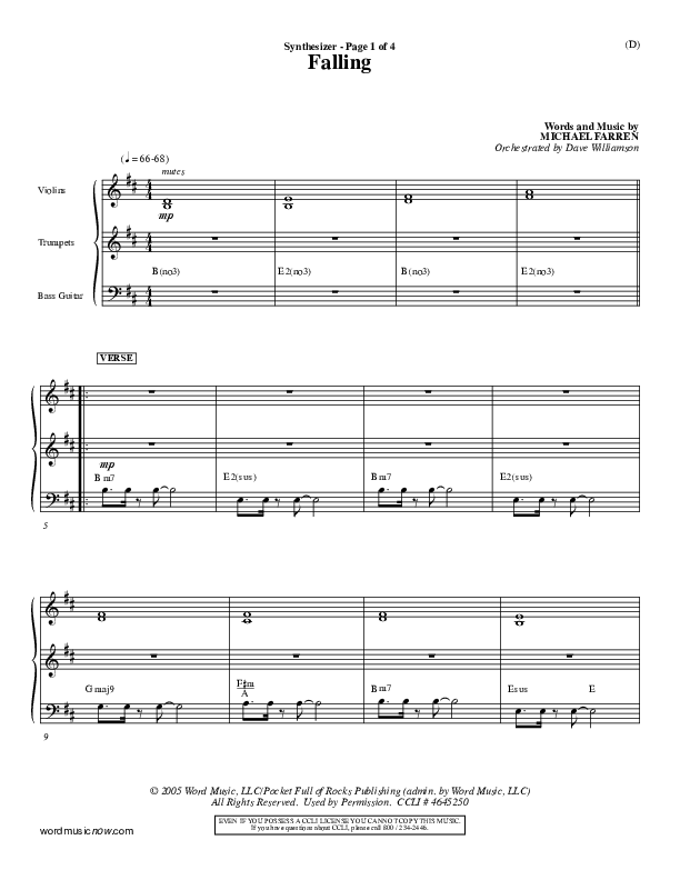 Download the Orchestration for Falling by Pocket Full Of Rocks, from the album Word Music Now.