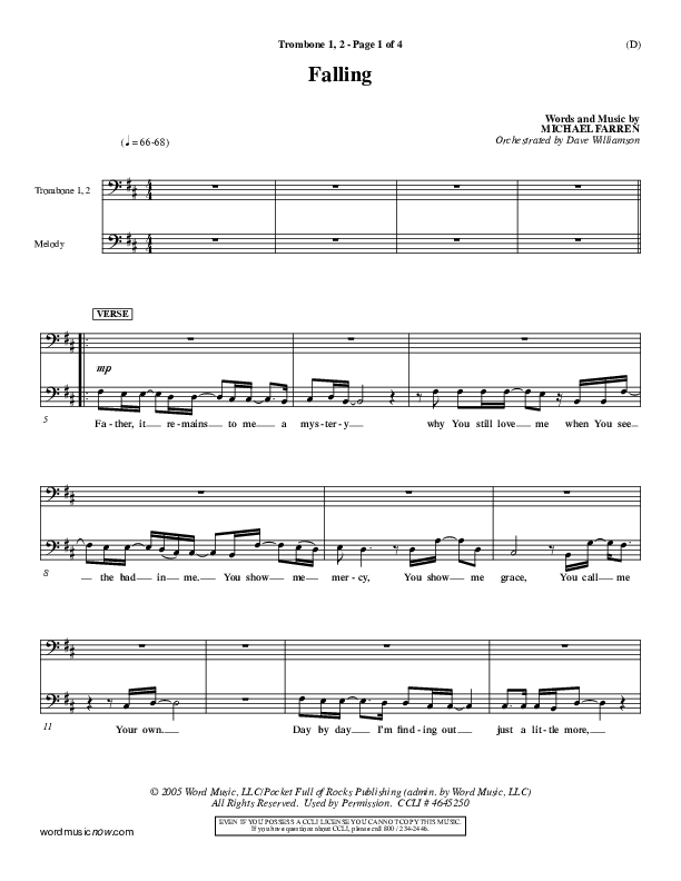 Download the Trombone 1,2 sheet music for Falling by Pocket Full Of Rocks, from the album Word Music Now.