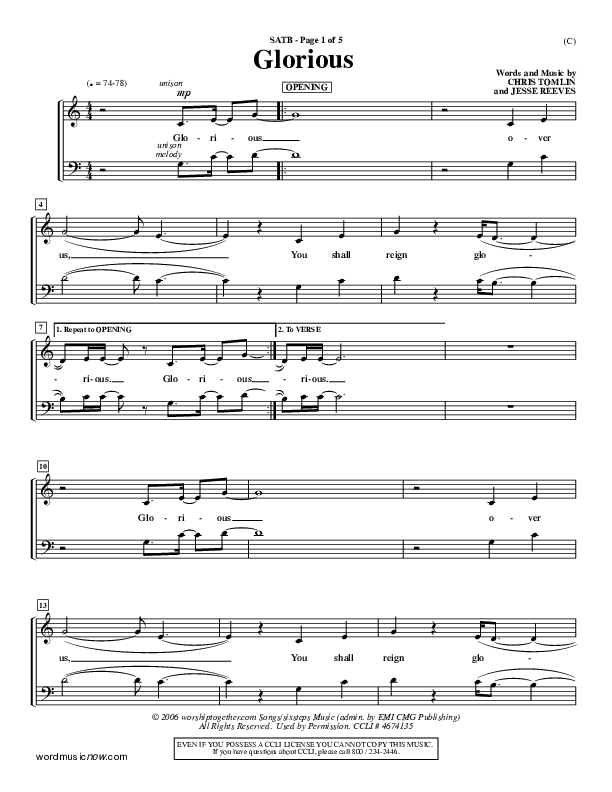 Download the Choir Sheet for Glorious by Chris Tomlin, from the album Word Music Now.
