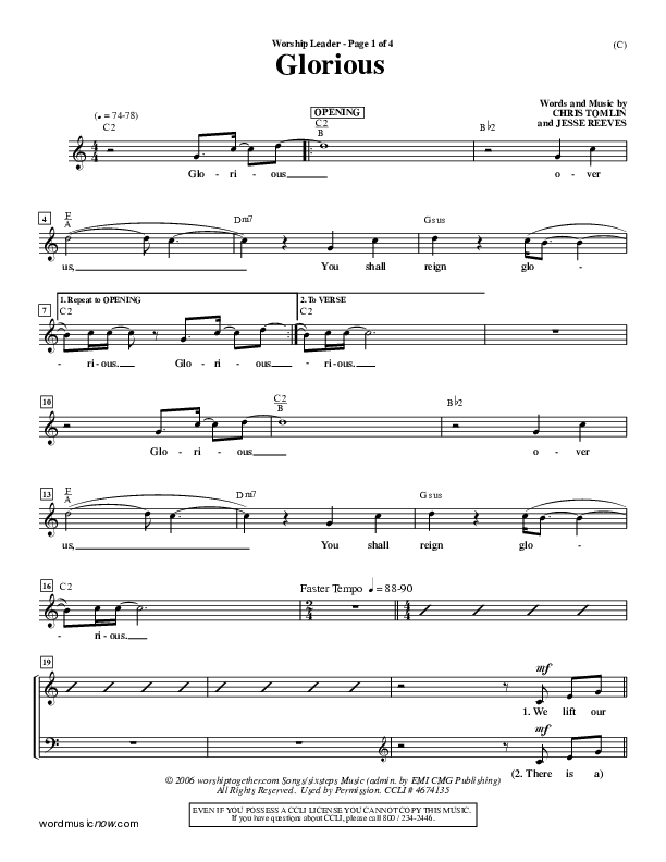 Download the Orchestration for Glorious by Chris Tomlin, from the album Word Music Now.
