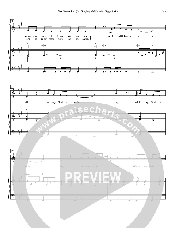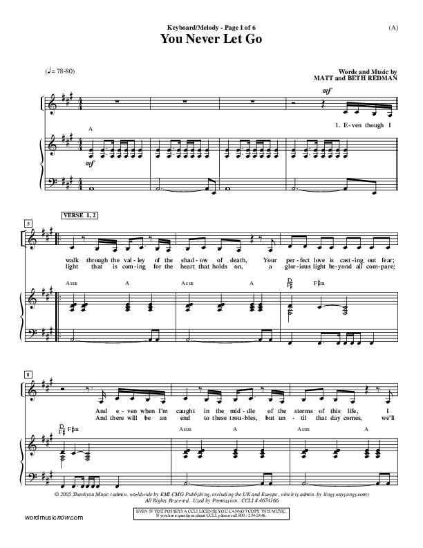 Download the piano sheet for You Never Let Go by Matt Redman, from the album Word Music Now. This song was arranged by Dave Williamson in the key of A, Bb.