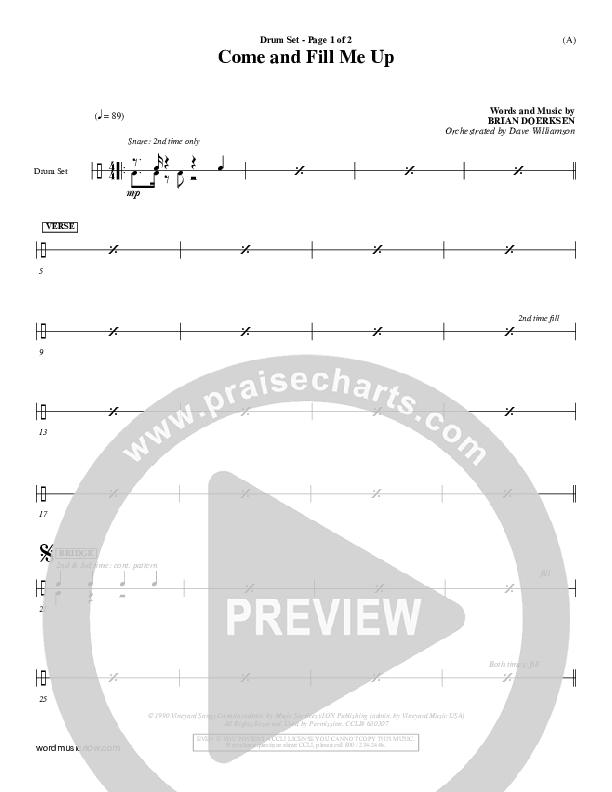 Download the Orchestration for Come And Fill Me Up by Brian Doerksen, from the album Word Music Now.