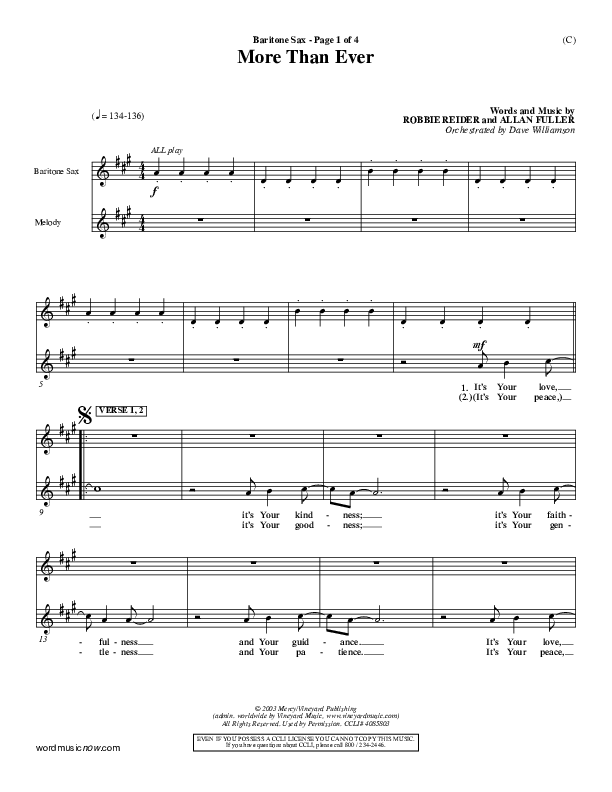 Download the Bari Sax sheet music for More Than Ever, from the album Word Music Now.