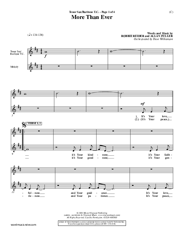 Download the Orchestration for More Than Ever, from the album Word Music Now.