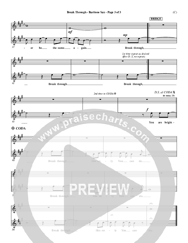 Break Through Bari Sax Sheet Music PDF (Tommy Walker)