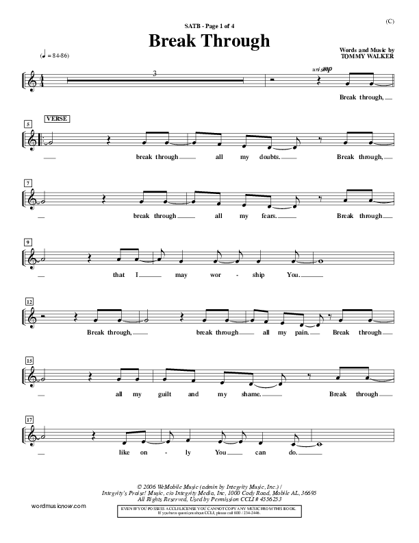 Download the Choir Sheet for Break Through by Tommy Walker, from the album Word Music Now.