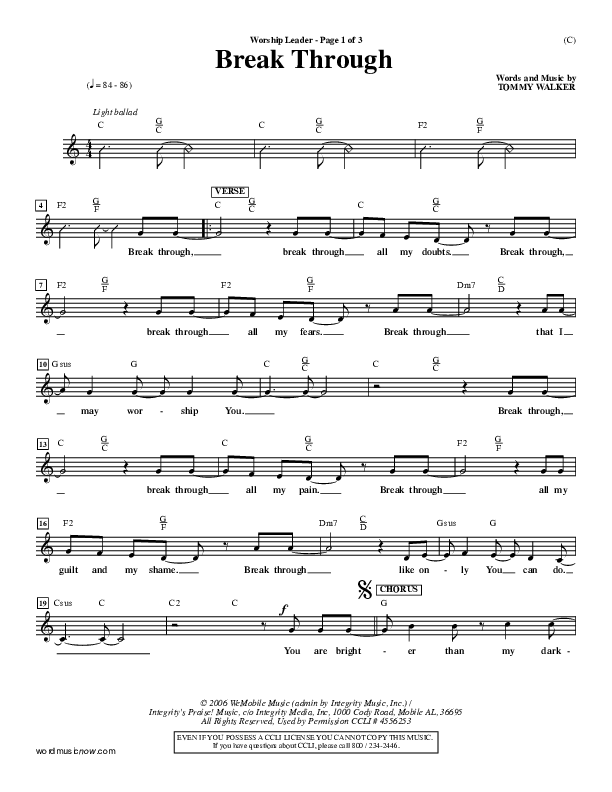Download the Orchestration for Break Through by Tommy Walker, from the album Word Music Now.