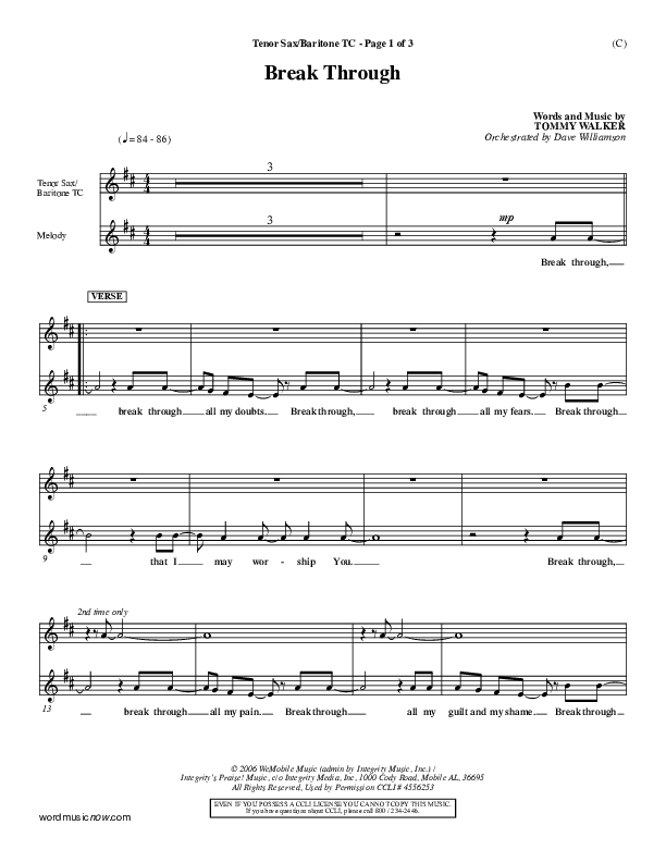 Download the Orchestration for Break Through by Tommy Walker, from the album Word Music Now.