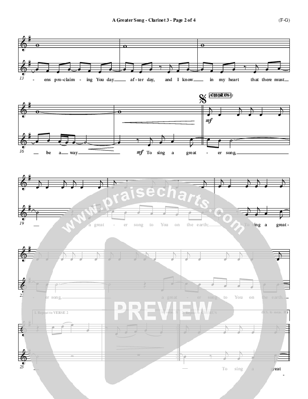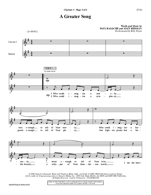 Download the Orchestration for A Greater Song by Paul Baloche, from the album Word Music Now.