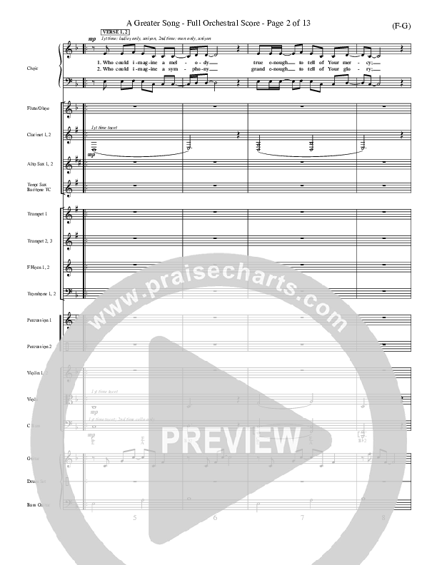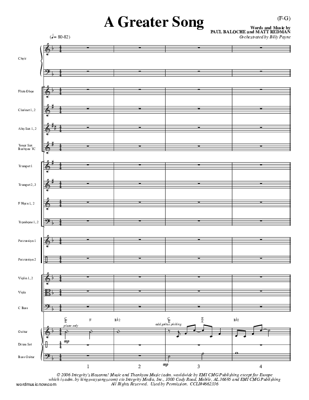 Download the Orchestration for A Greater Song by Paul Baloche, from the album Word Music Now.