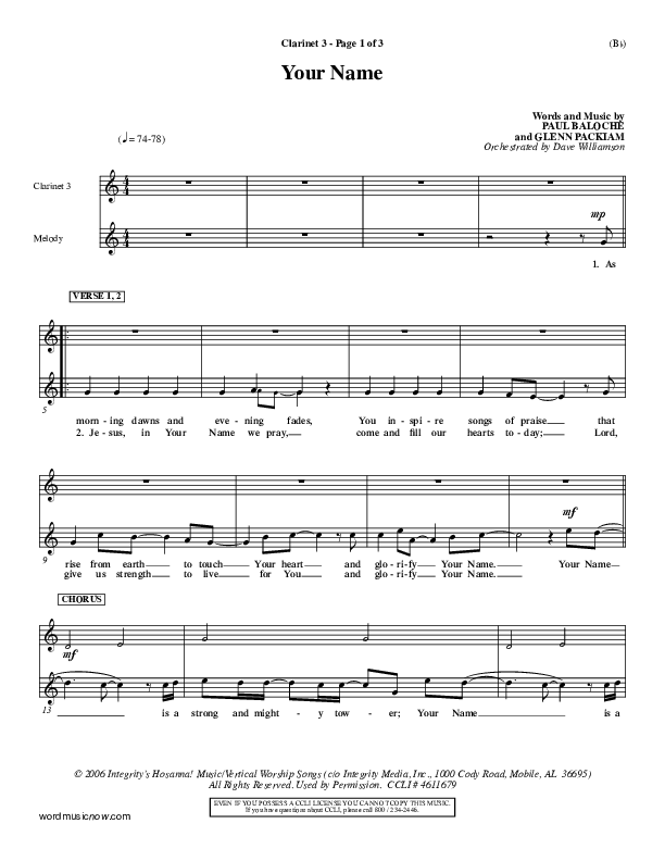 Download the Orchestration for Your Name by Paul Baloche, from the album Word Music Now.
