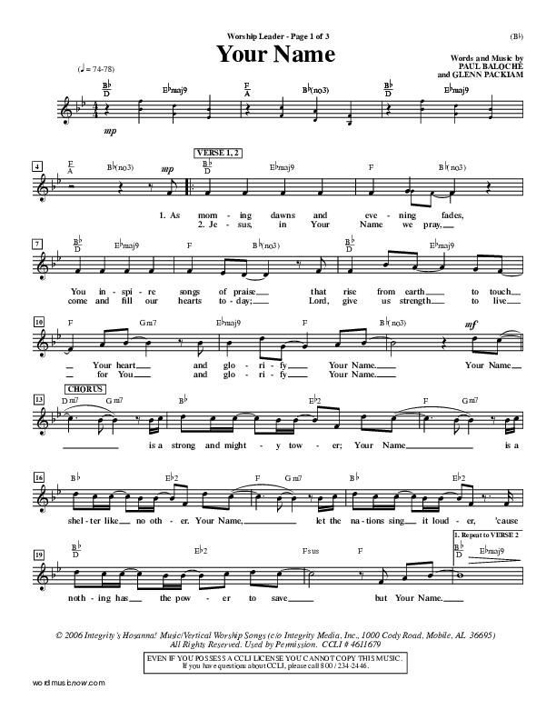 Download the Orchestration for Your Name by Paul Baloche, from the album Word Music Now.