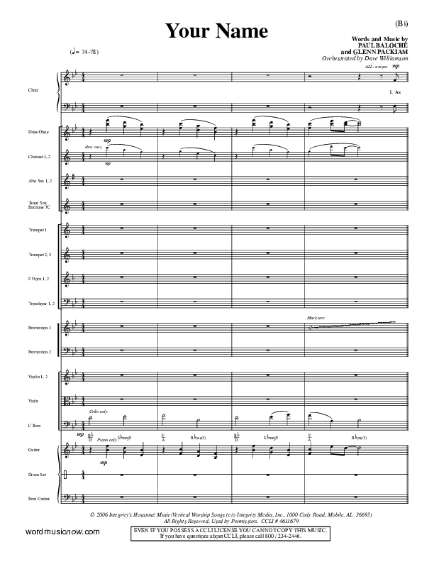 Download the Orchestration for Your Name by Paul Baloche, from the album Word Music Now.