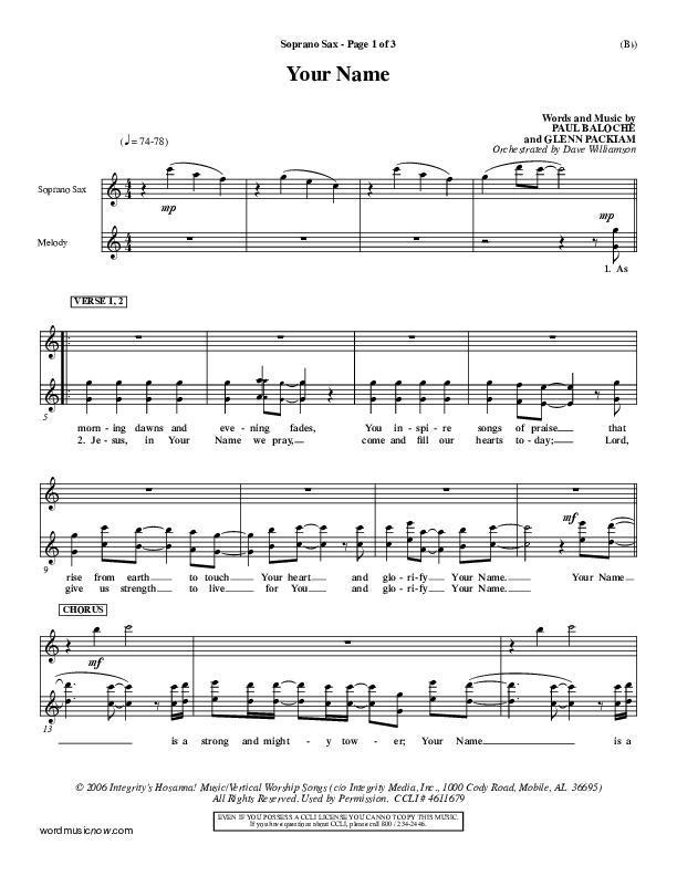 Download the Orchestration for Your Name by Paul Baloche, from the album Word Music Now.