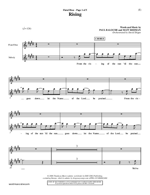 Download the Flute/Oboe sheet music for Rising by Paul Baloche, from the album Word Music Now.
