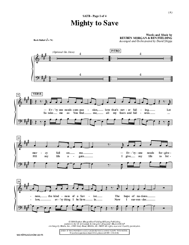 Download the Choir Sheet for Mighty To Save by Reuben Morgan, from the album Word Music Now.