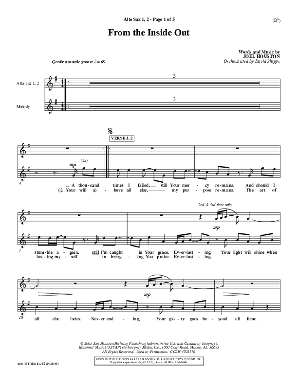 Download the Alto Sax 1,2 sheet music for From The Inside Out by Joel Houston, from the album Word Music Now.