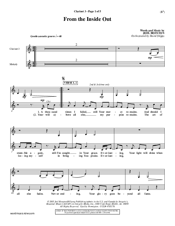 Download the Orchestration for From The Inside Out by Joel Houston, from the album Word Music Now.