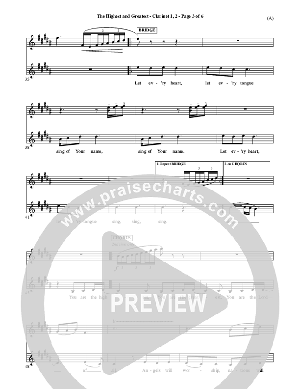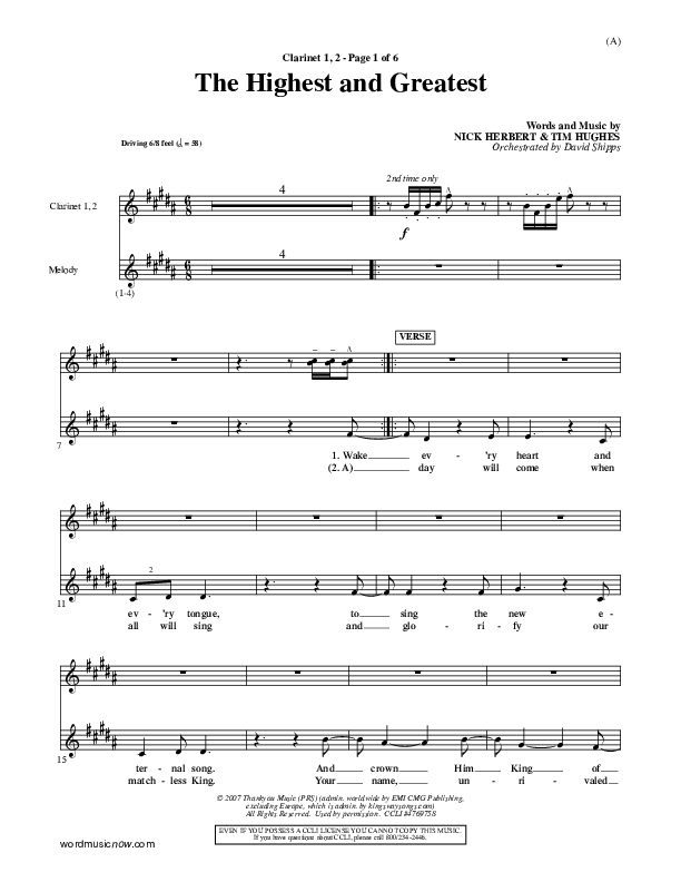 Download the Clarinet sheet music for The Highest And The Greatest by Tim Hughes, from the album Word Music Now.