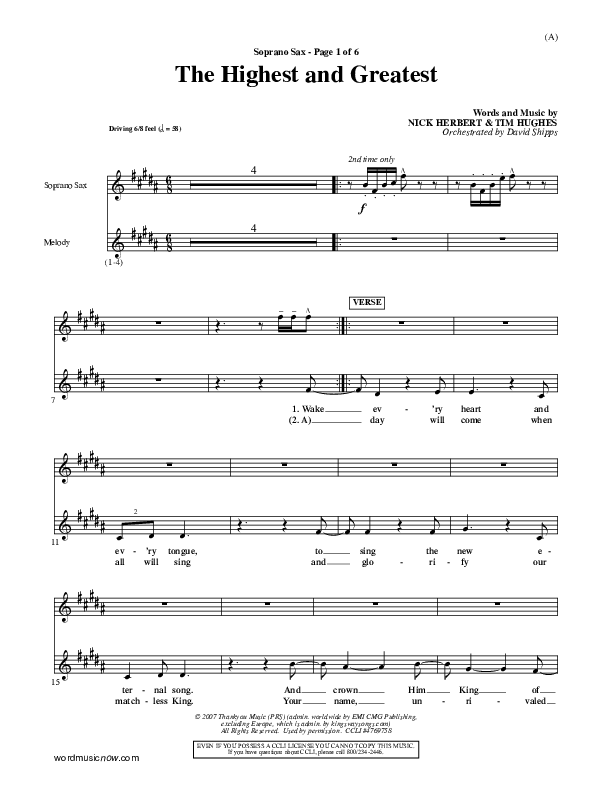 Download the Orchestration for The Highest And The Greatest by Tim Hughes, from the album Word Music Now.