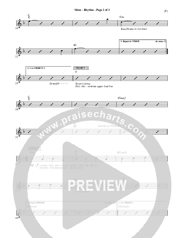 Download the Rhythm Chart for Shine by Matt Redman, from the album Word Music Now. This song was arranged by David Shipps in the key of F, G.