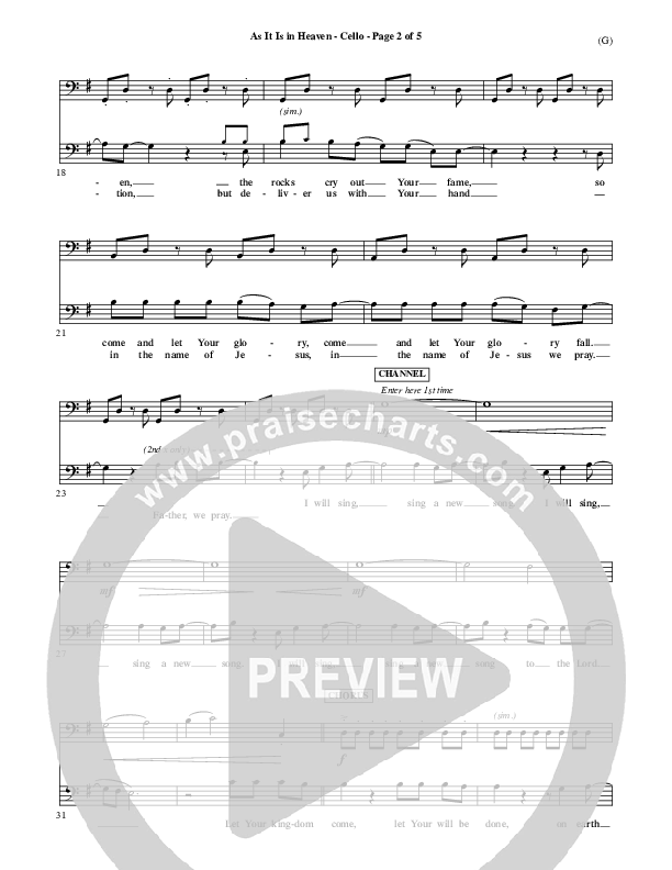Download the Cello sheet music for As It Is In Heaven by Matt Maher, from the album Word Music Now.