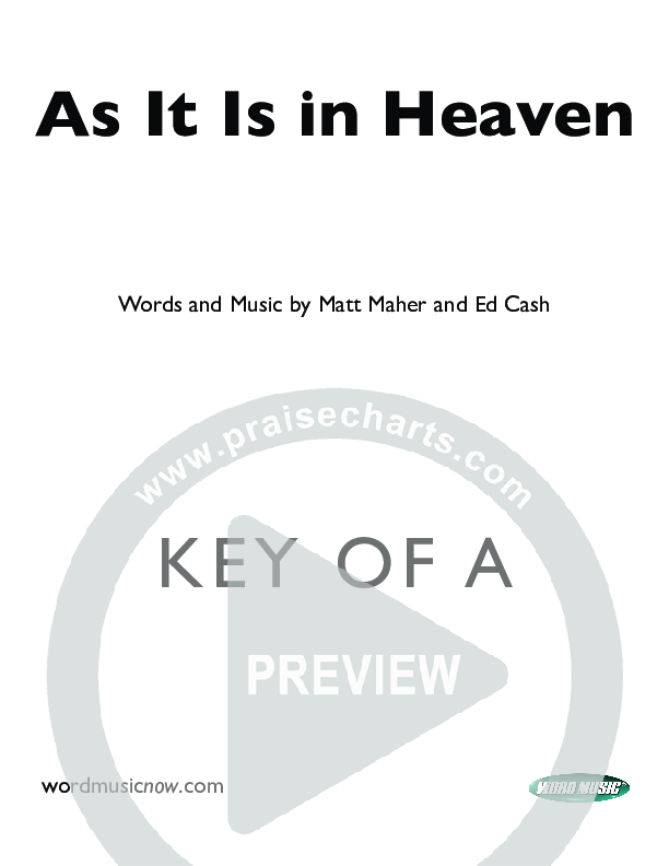Download the Orchestration for As It Is In Heaven by Matt Maher, from the album Word Music Now.