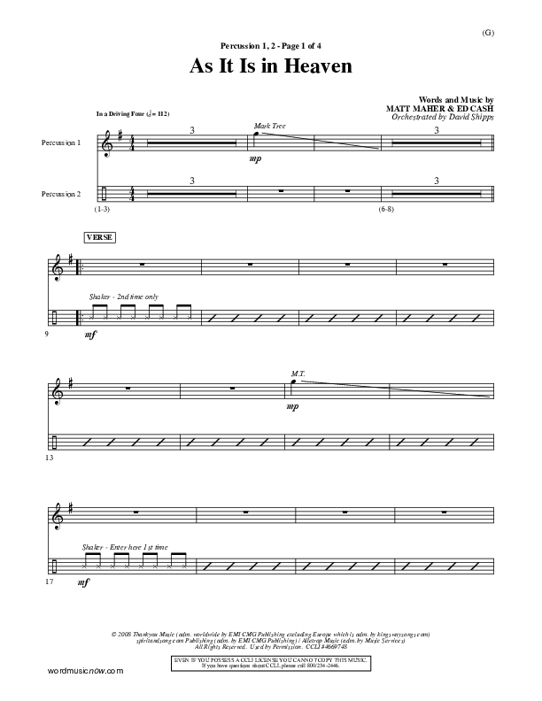 Download the Orchestration for As It Is In Heaven by Matt Maher, from the album Word Music Now.