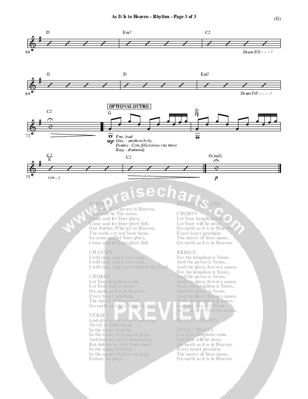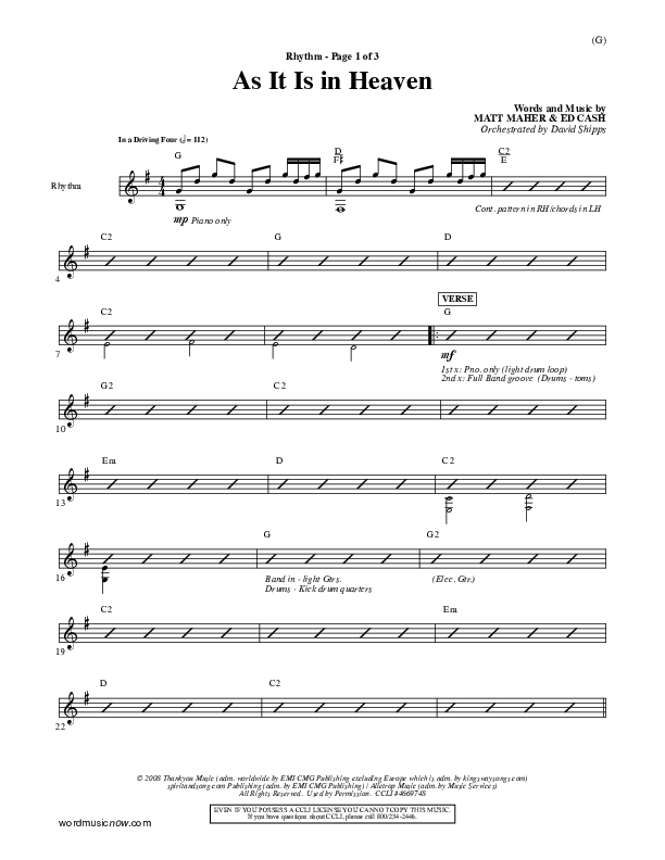 Download the Rhythm Chart for As It Is In Heaven by Matt Maher, from the album Word Music Now.