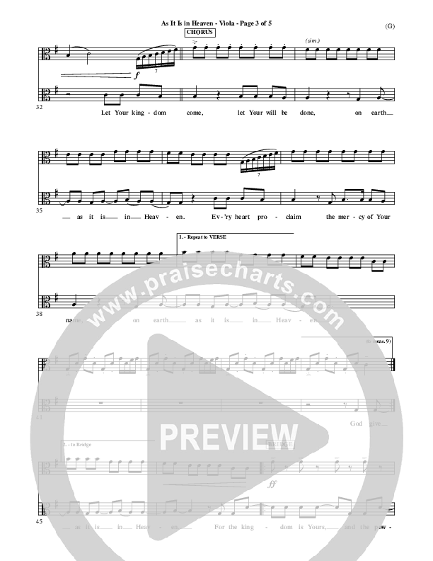 As It Is In Heaven Viola Sheet Music PDF (Matt Maher)