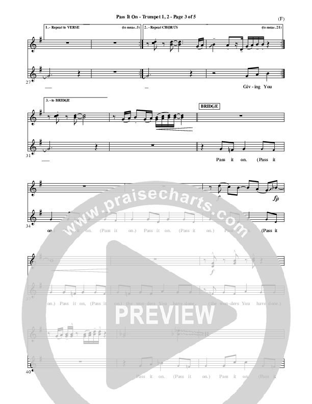 Download the trumpet sheet music for Pass It On by Tommy Walker, from the album Word Music Now.