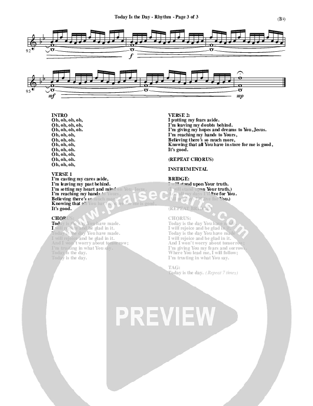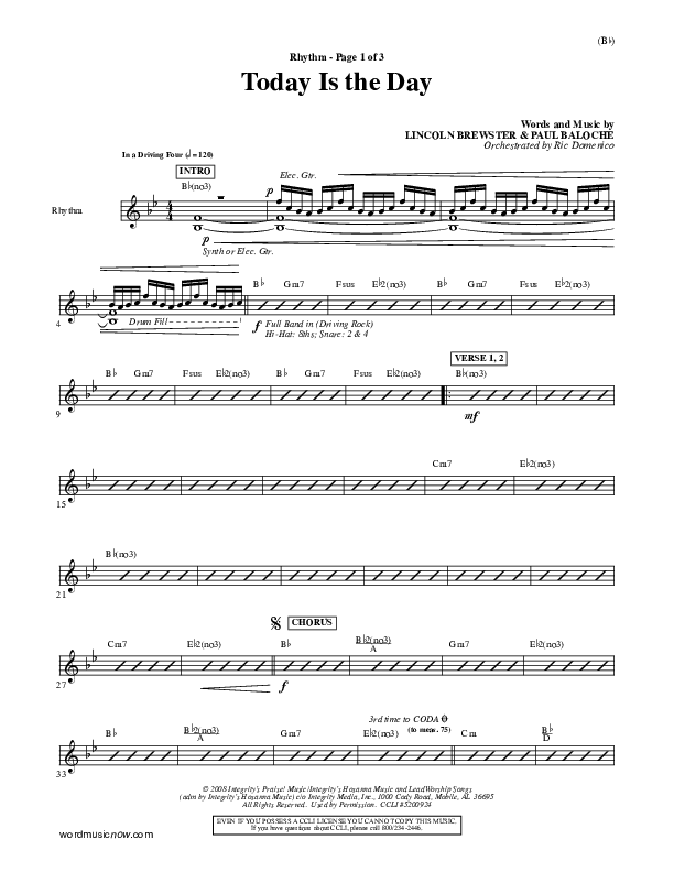 Download the Rhythm Chart for Today Is The Day by Lincoln Brewster, from the album Word Music Now.