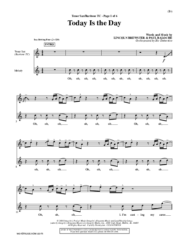 Download the Orchestration for Today Is The Day by Lincoln Brewster, from the album Word Music Now.