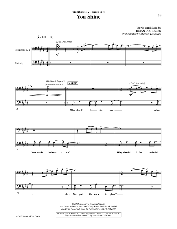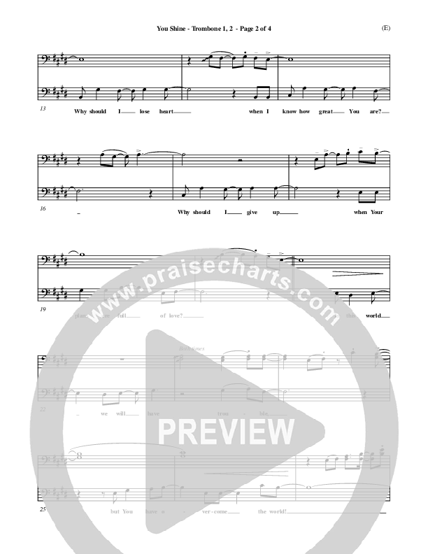 Download the Trombone 1,2 sheet music for You Shine by Brian Doerksen, from the album You Shine.