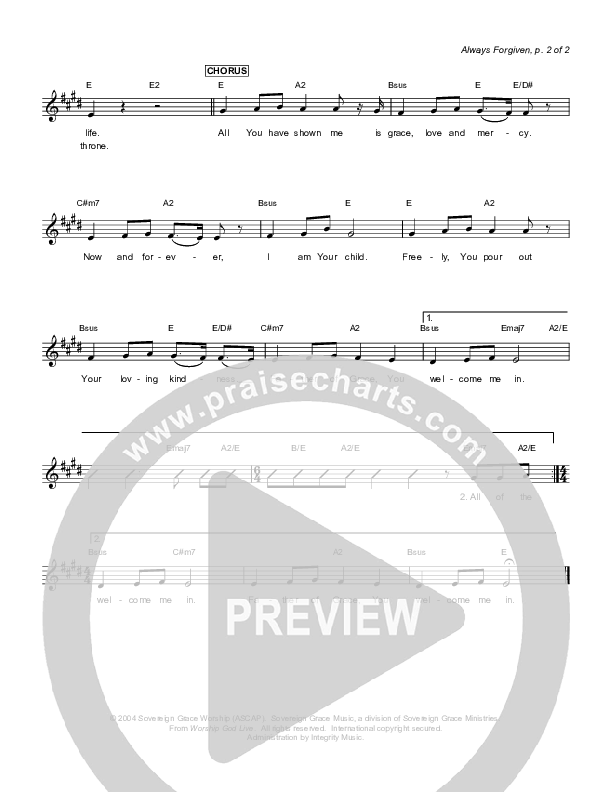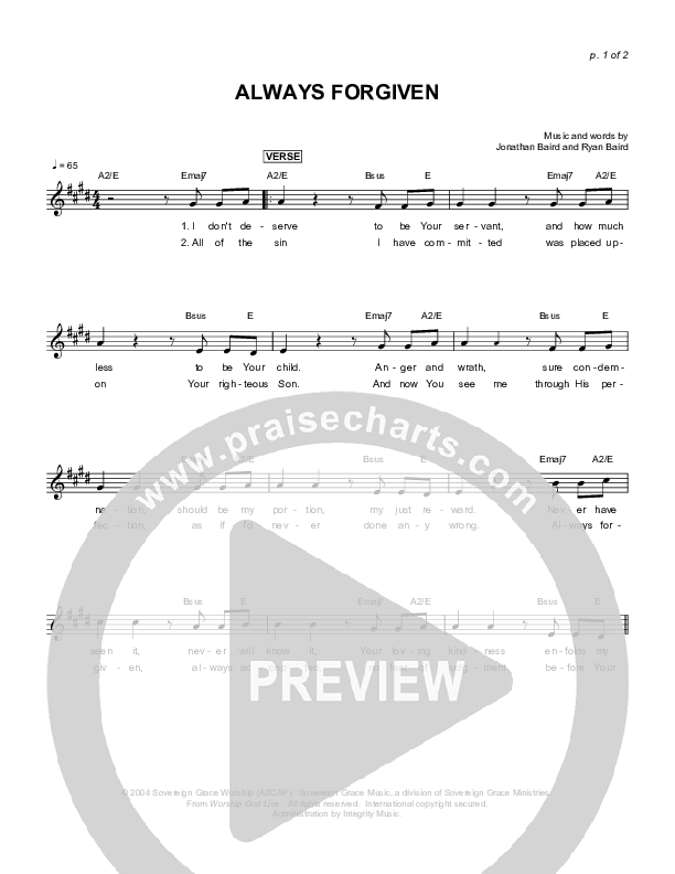 Download the sheet music for Always Forgiven by Sovereign Grace, from the album Worship God Live.