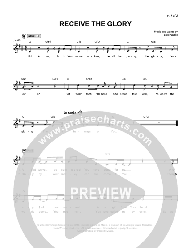 Receive The Glory Sheet Music PDF (Sovereign Grace)