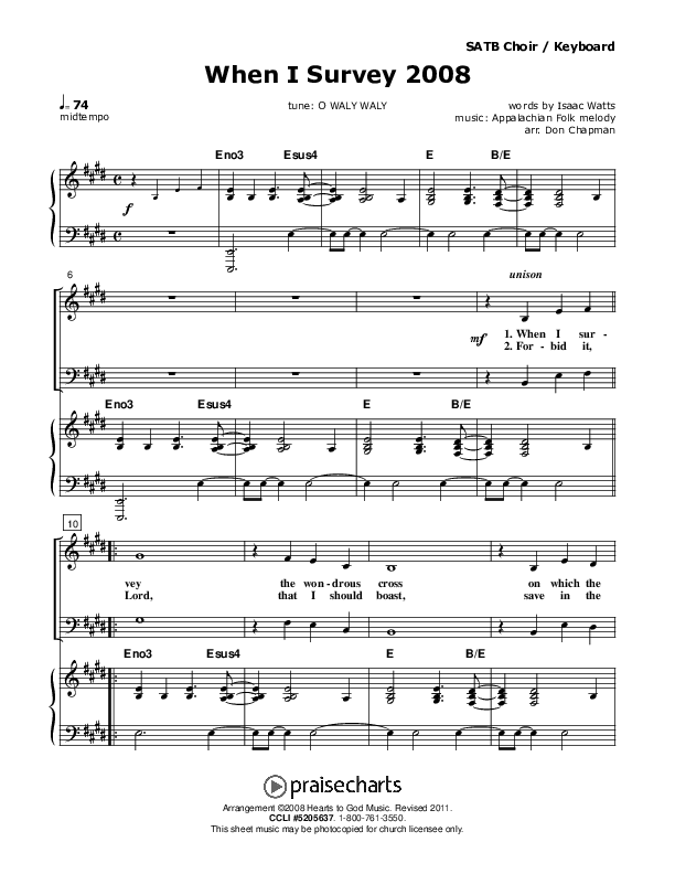 Download the Orchestration for When I Survey by Don Chapman, from the album Journey To The Cross - Service Guide.