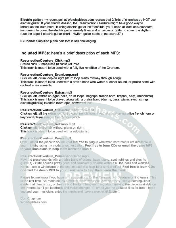 Download the Orchestration for Resurrection Overture by Don Chapman, from the album Resurrection Overture. This song was arranged by Don Chapman in the key of D.